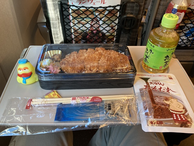 荷物を引っ張り出す前に、駅弁コーナーで、矢場とんの味噌カツ御膳を買う。まだ新幹線の時間には早かったが、待っていてもすることも無いので、早めにホームに行って待つ。新幹線の中で食う味噌カツ御膳は美味かった。また、運よく隣の席の乗客が仙台で降りて、以後誰も乗ってこなかったので楽だったし。